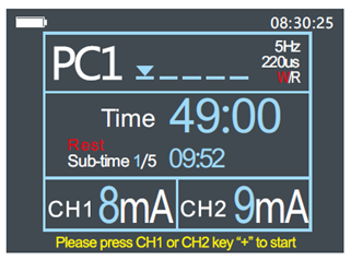 Für die erweiterte Therapie ist es möglich, zwei Kanäle im synchronen Modus mit der Möglichkeit der Angabe einer Verzögerungszeit (Delay) und im alternierenden Modus (ALT) zu verwenden, z. B. für die Stimulation von Agonisten und Antagonisten.